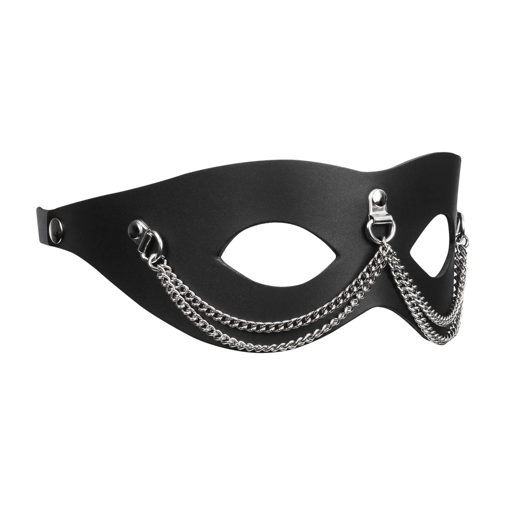 Rimba Bondage Play - Leather Mask with Chain Decoration - Black & Silver