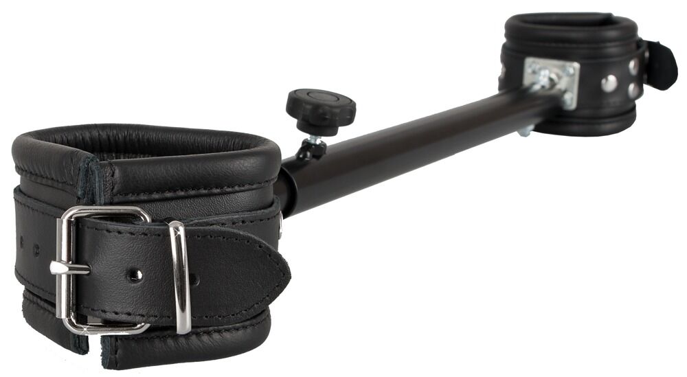 Sturdily mounted, softly lined leather leg irons with buckle fastenings on an adjustable metal bar - extendable from 35 cm to 60 cm. Leather (nappa and split leather), metal.